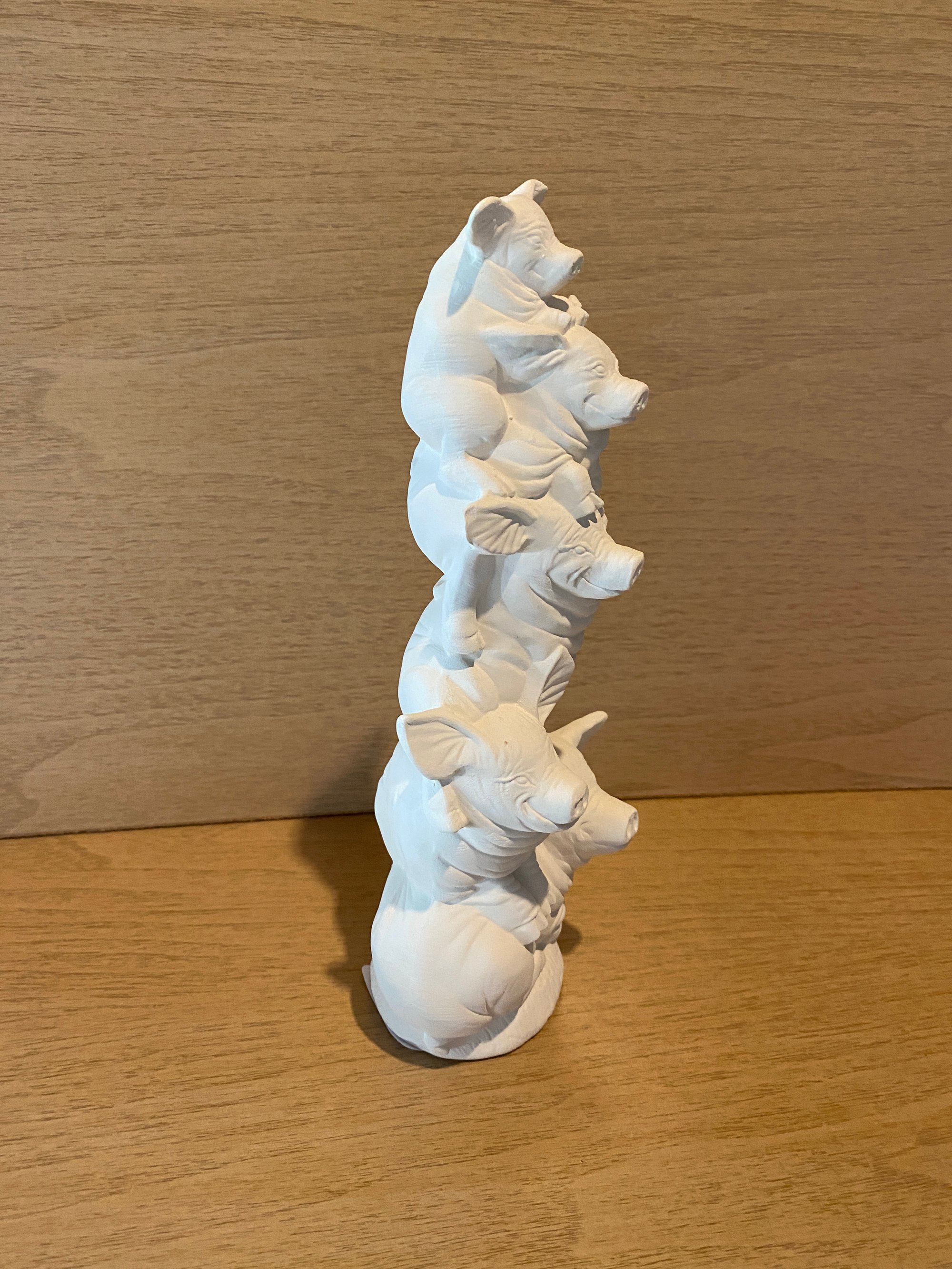Ready to Paint Stack of 5 Cute Pigs. These charming, unpainted ceramic figurines are perfect for personalizing your space or creating one-of-a-kind gifts for loved ones. No need to fire again. Once painted and dry just spray with a clear gloss or use a bottle of our Mod Podge to brush on for a clear finish.