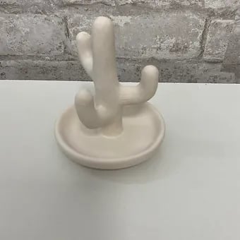 This Cactus Ring Holder is a fantastic accessory for any DIY Unpainted Ceramics enthusiast. Measuring at 3.5W x 3.75H, this holder is perfect for keeping your rings organized with its jewelry tray at the bottom. Unlike other ceramics products, there's no need to go through the hassle of firing it again. All you need to do is spray it with a clear gloss or use our 2 oz. Mod Podge bottle to give it the finishing touch it deserves. Don't miss out on this unique and stylish holder.