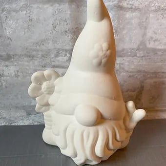 Our Peace Sign Gnome is a delightful addition to any DIY ceramics collection. Standing at 6.25" x 4.5", this ready-to-paint bearded gnome comes with a flower in one hand and is making a peace sign with the other. With no additional firing needed, all you need to do is paint and decorate your gnome to your liking. Finish off with a clear gloss spray or our 2 oz. bottle of Mod Podge for a polished look. Spread peace and happiness with this charming gnome!